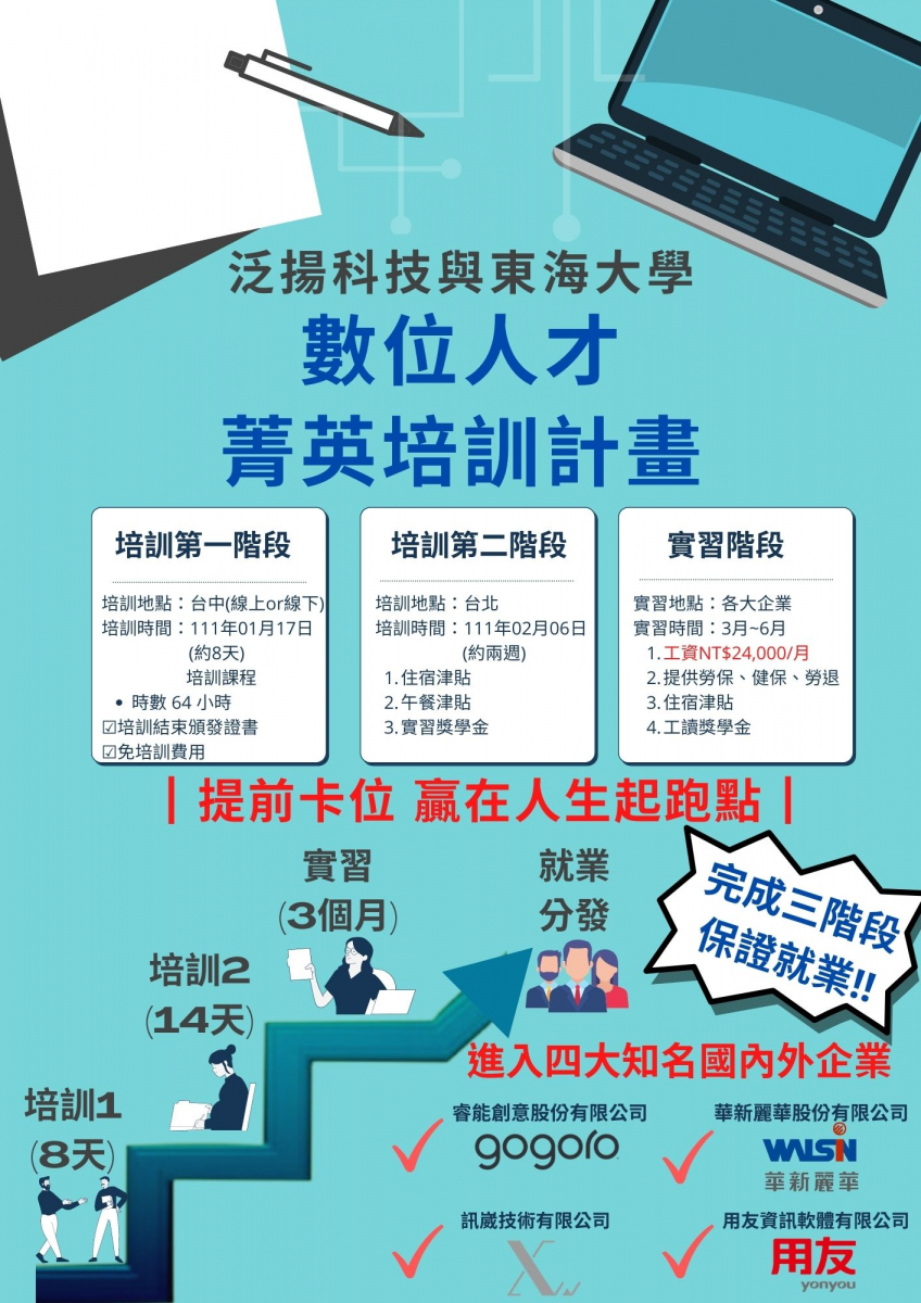 泛揚科技2022數位人才培訓實習計畫(全職實習)--報名延長至12/3截止!!