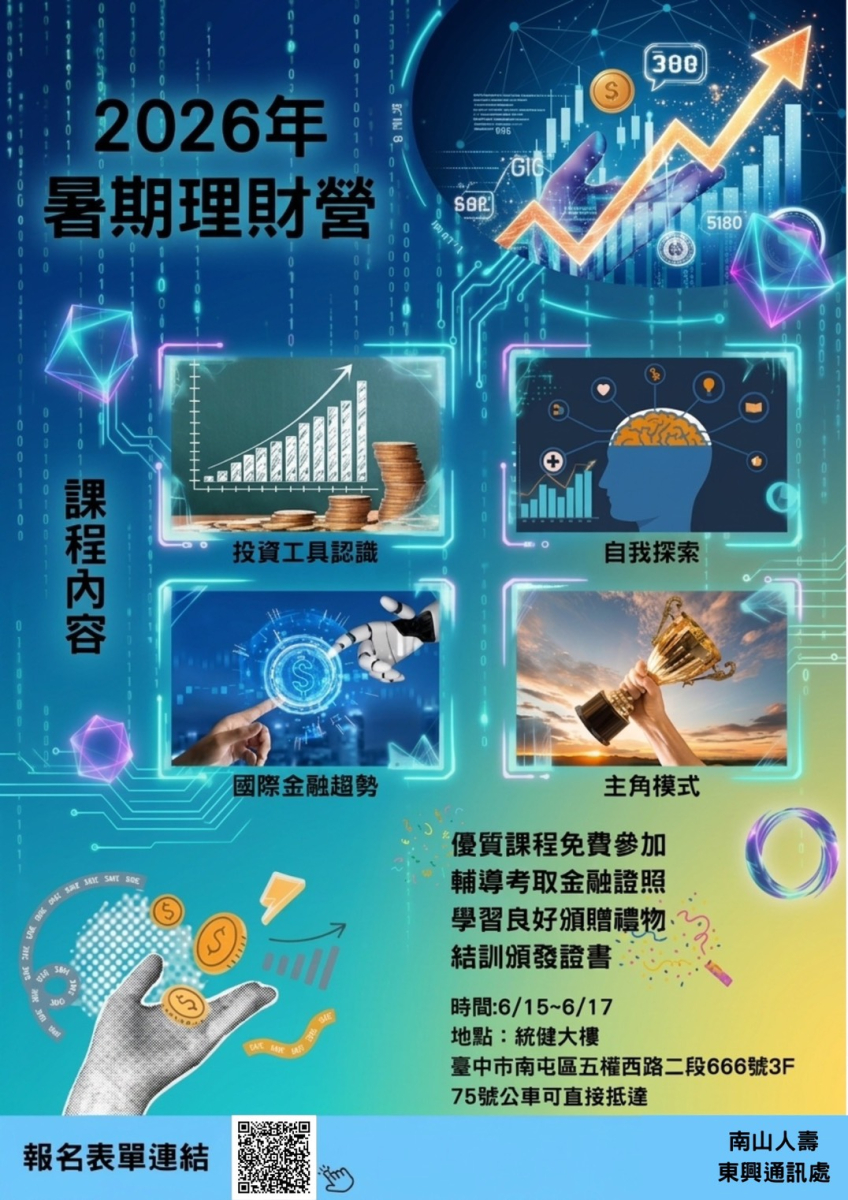 活動地點: 南山人壽-東興通訊處 [台中市五權西路二段666號3F(統健大樓)]