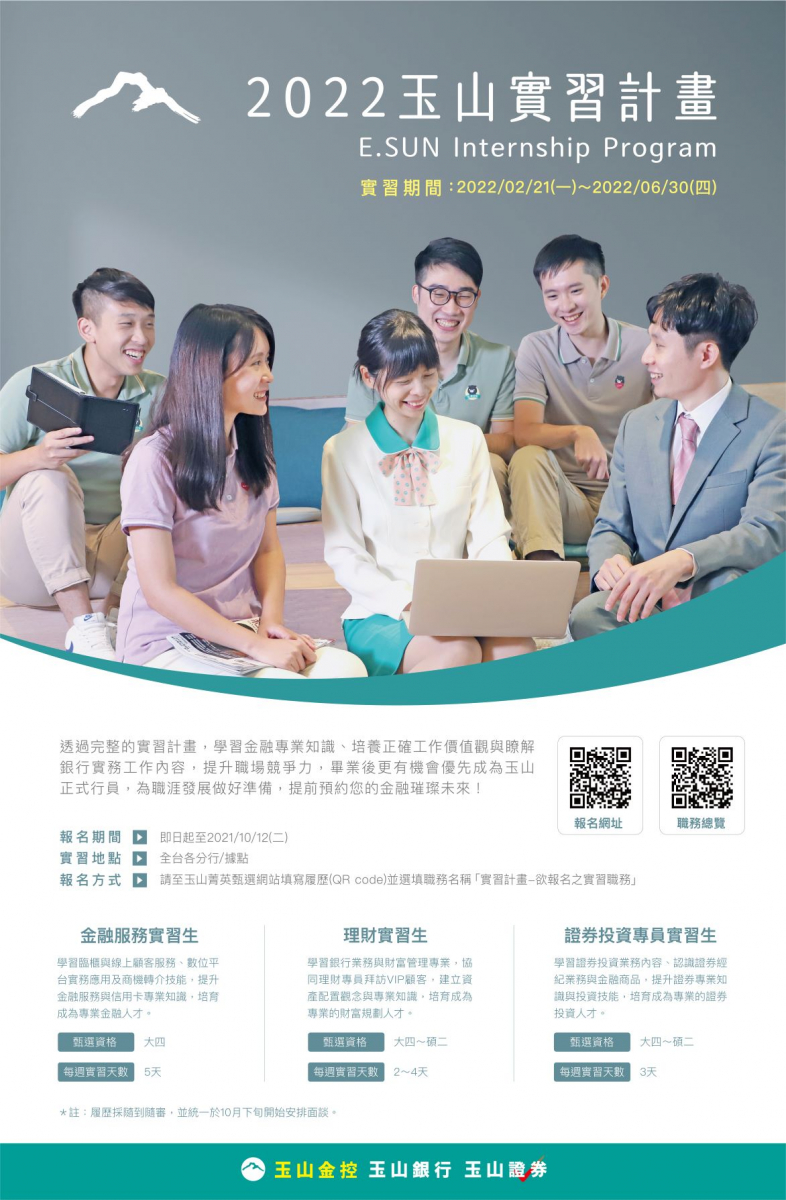 2022年玉山企業實習徵選公告--10月12日截止