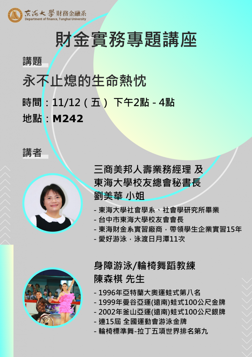 110-1研究所財務專題講座--11/12(五)劉美華小姐/陳森棋先生