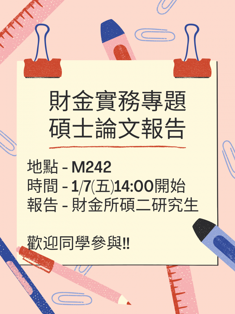 110-1財金實務專題碩士論文報告--1/7(五)14:00開始