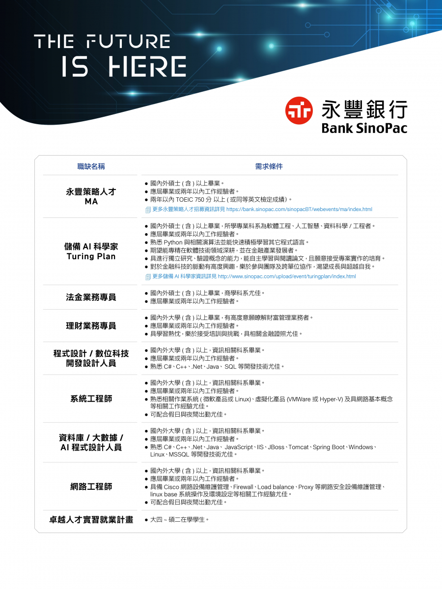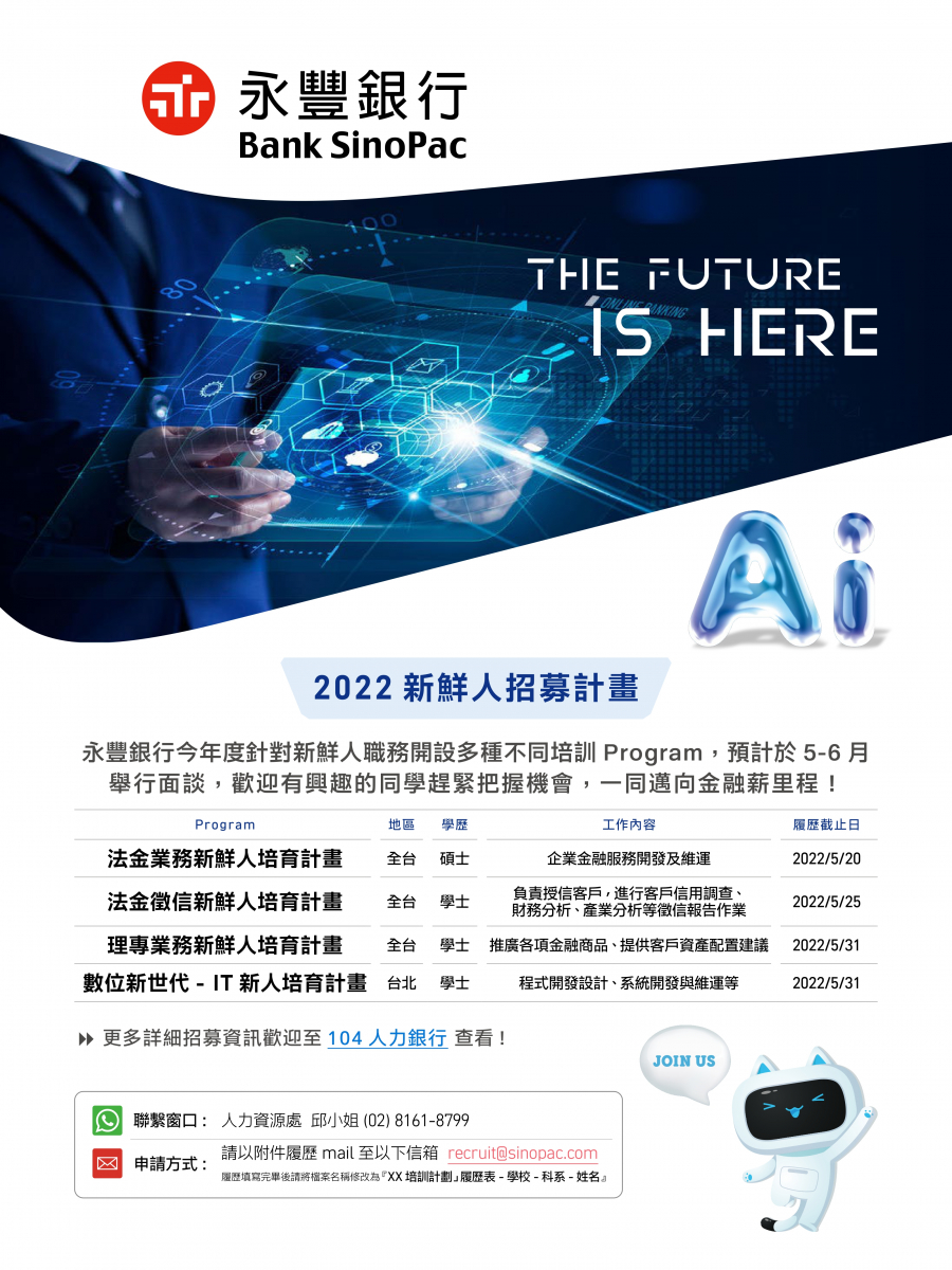 【2022永豐銀行新鮮人培訓計畫】現正熱烈招募中