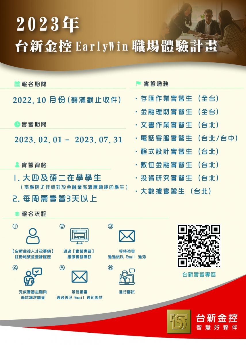 台新金控 2023 Early Win 職場體驗計畫開始甄選囉!