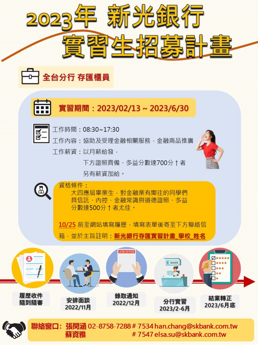 新光銀行2023年實習生招募計畫