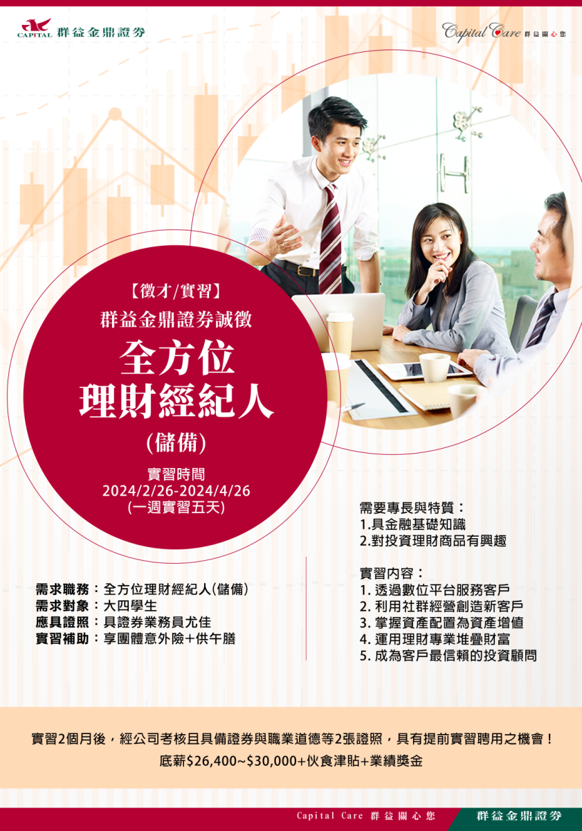 群益金鼎證券2024全方位理財經紀人實習開始報名囉~~