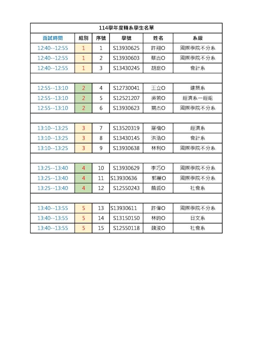 114學年度財金系轉系面試公告