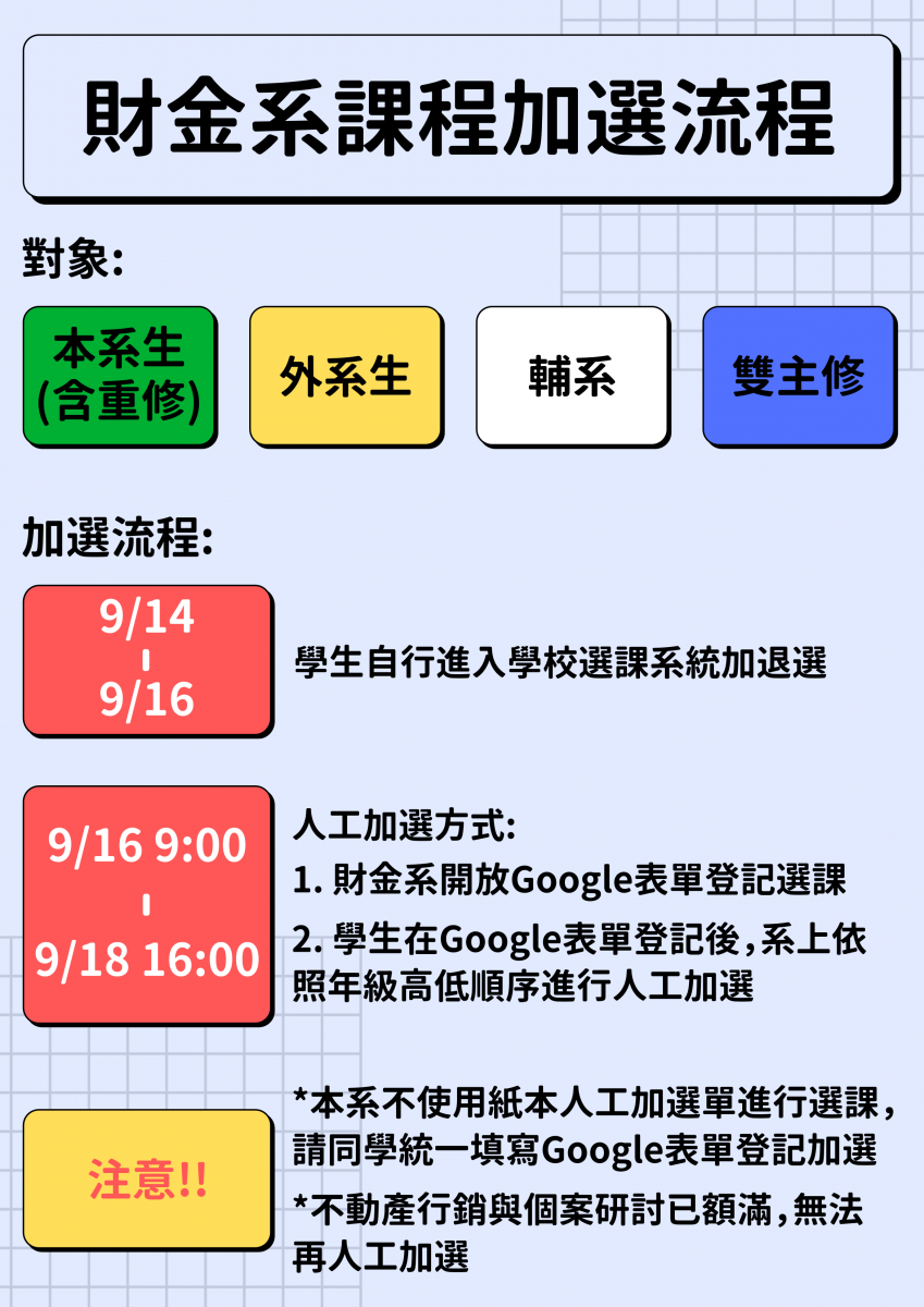 111-1財金系人工加選時程公告-網路google表單選課