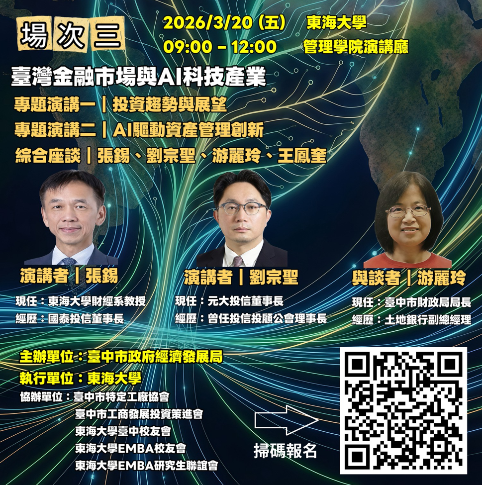 本次活動聚焦於AI技術如何驅動資產管理創新,並探討臺灣金融市場的未來展望,歡迎師生與校友踴躍報名參加。